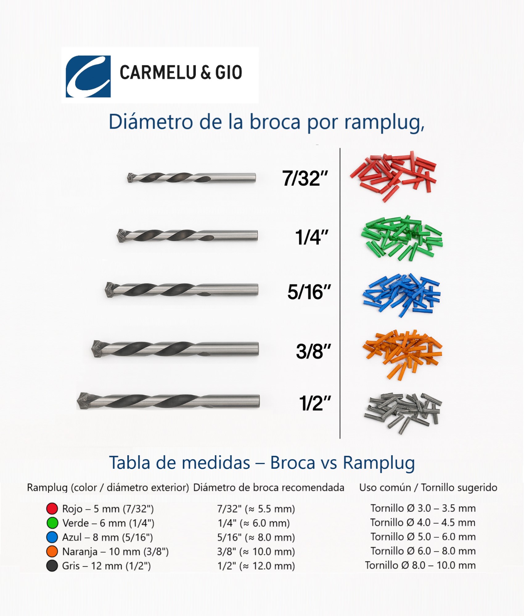 Los ramplugs de expansión plástica están diseñados para ofrecer una fijación segura y duradera en superficies de concreto, ladrillo, bloques y mampostería. Su cuerpo estriado garantiza un anclaje firme al expandirse con la inserción del tornillo, evitando el giro dentro del orificio.