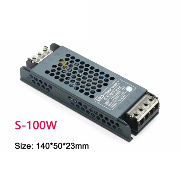Fuente de poder tipo industrial diseñada para alimentar sistemas de iluminación LED y otros dispositivos electrónicos de bajo voltaje. Su carcasa metálica de aluminio, con diseño tipo panal perforado, permite una excelente ventilación y disipación de calor, lo que se traduce en mayor eficiencia y una vida útil prolongada.